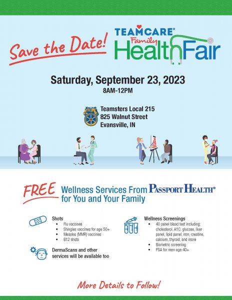 TeamCare covers the lives of 500,000 members from 1,100 different employers throughout the United States making it the largest labor fund in the country. TeamCare will be hosting a Family Health Fair at Teamsters Local 215 for all our Union Members. It will start right after the monthly membership meeting and families are invited, making attendance strong. If you are a wellness provider/vendor in and around the Evansville, IN area, we invite you to participate in our event.