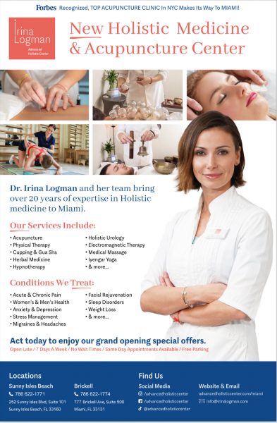 Advanced Holistic Center is a complementary and alternative healthcare facility in all of New York City and Miami. With four offices across 2 states manned by our fully licensed and board certified acupuncturists (several of whom are master herbalists of the Chinese tradition), a team of highly-qualified assistants, physical therapists, chiropractors and massage therapists, trained in both Eastern and Western modalities, you need never worry about fitting your treatments into your schedule as we offer weekdays and weekends, extended hours, same day appointments and concierge service. We pride ourselves on being a premiere integrative healthcare facilities, with locations in NYC and Miami. All practitioners are board certified, holding Doctoral’s or Master’s degrees in alternative medicine from industry leading universities with rigorous training in both Eastern and Western medicine. We are able to fluently and professionally speak the language of whatever healthcare providers you choose to meet your needs, be they physical therapists or primary care physicians. Our courteous, well-trained, highly skilled team of brilliant practitioners make it their mission to use thoroughly researched and well-proven techniques to help you achieve your health goals.