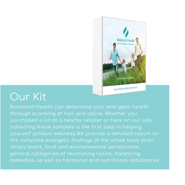 Balanced Health can determine your bioenergetic health through scanning of hair and saliva. Simply order a test kit online, and then collect your samples to take the first step in helping yourself achieve wellness with our easy at home process. We provide a detailed report on the complete energetic findings of the whole body scan: stress levels, food and environmental sensitivities, general categories of resonating toxins, balancing remedies, as well as hormonal and nutritional imbalances. Knowledge is key, but action is equally important. We provide a custom tested regimen that includes herbs, homeopathic remedies, and nutritional supplements, all of which can be purchased on our site.