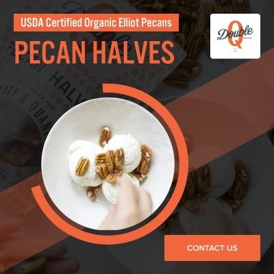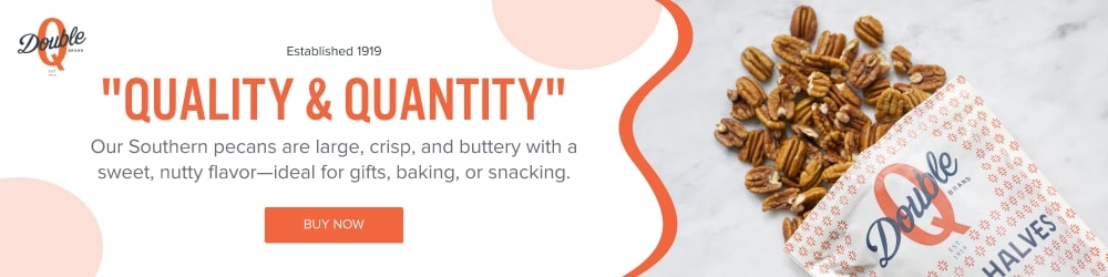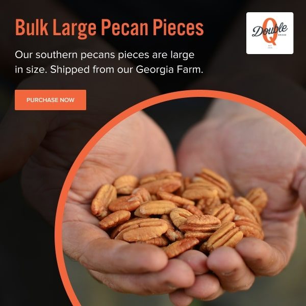 Double Q Pecan Company is one of the top pecan farms in Georgia, serving Central USA and Eastern Canada. We proudly provide mammoth pecan halves, roasted pecan halves, and Elliot pecans for sale. Our products bring the taste of Georgia pecans to your home, straight from our organic farm. With a commitment to sustainable farming and excellence, we supply fresh pecans through our nut processing plant to both retail nut shops and gourmet specialty foods stores. Whether you’re enjoying our pecans from a local & organic market or purchasing wholesale, we guarantee farm-to-fork quality in every bite of our gourmet nut products.