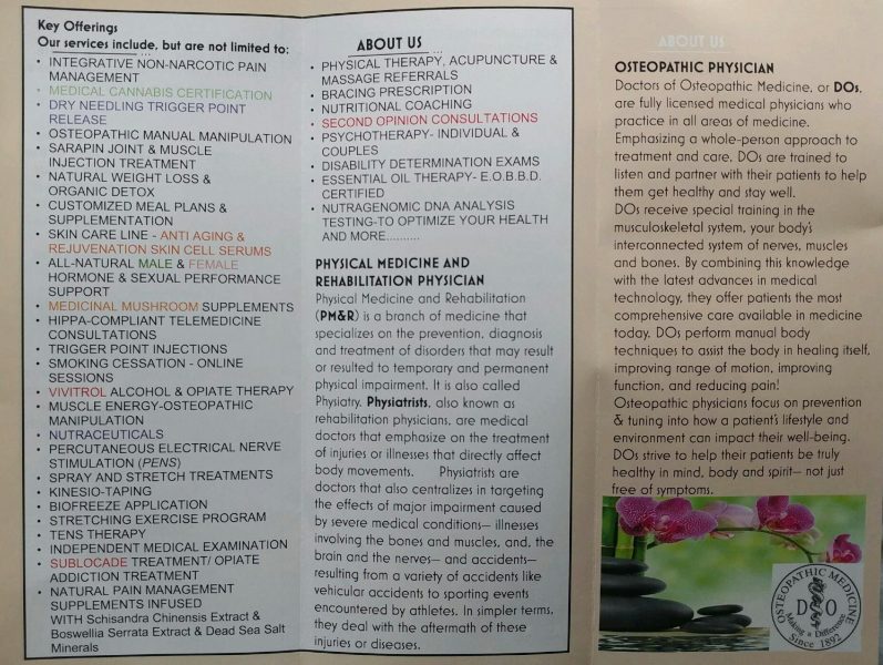 Elite Integrative Wellness Center [Elite Spine and Pain (ESP)] is here to treat you with the knowledge of double Board Certified Medical Physicians, who have published national journal articles and book chapters in the field of pain management, have been Certified with a Specialty DEA license in Addiction, have evaluated thousands of clients for Disability Determination Department for Social Security, have taught as Clinical Instructors for an Accredited Medical Physician Fellowship Program in the field of Interventional Pain Management, and has been educated in medical cannabis botany and utilization.