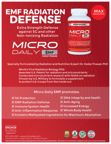 Welcome, If you are concern of the effects of 5G and your immune function as a Health Advocate with Engage Global my mission is reaching out to the masses in bringing awareness and educating the importance of having optimal immune function. With MicroDaily EMF a patent pending scientific formulation, you can now protect your body against 5G radiation and build your immune system. Microdaily EMF micronutrient supplement help to repair your DNA. Help rebuild a compromise immune function, the cause of disease. Enjoy better health by feeding your cells the micronutrients they need at the cellular level. Feel free to contact me with any questions or concern and RECEIVE A FREE SAMPLE of MicroDaily EMF. I am looking forward to chatting with you.