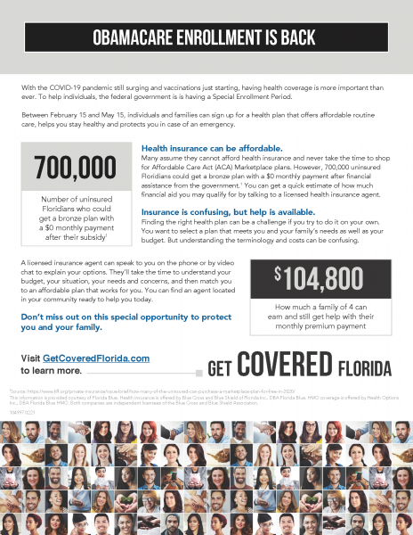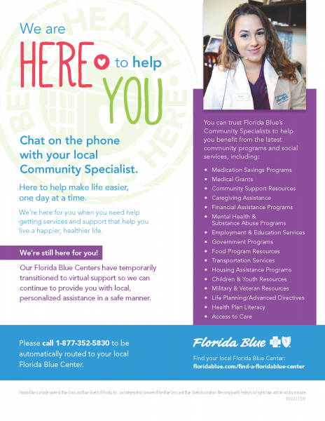 Florida Blue, your local Blue Cross Blue Shield provider, offers you easy access through our Florida Blue Centers. Our team is available to help you navigate any questions or services related to health care and help you live a healthier, happier life. If you missed Open Enrollment through the Affordable Care Act (ACA) Marketplace, you can still get a health plan! The Special Enrollment Period open until August 15 gives you another chance to get health insurance.