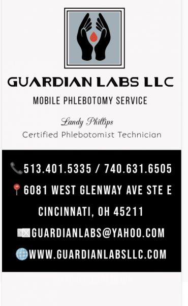 Guardian Labs is an independent mobile company servicing the Tri-State area: Ohio, Kentucky and Indiana. As a concierge business we can come to your home, workplace, clinical offices, or skilled nursing facility.