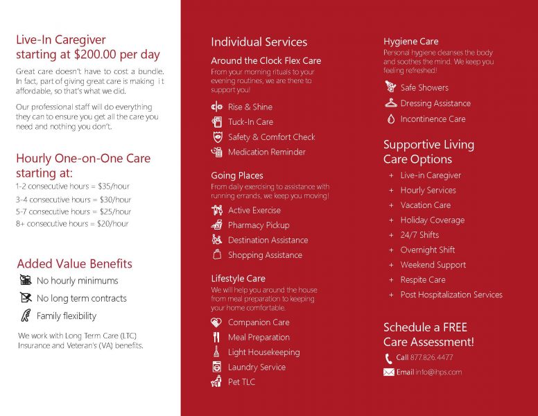 *IHPS provides hourly and live-in services to fit everyone’s wants and needs.