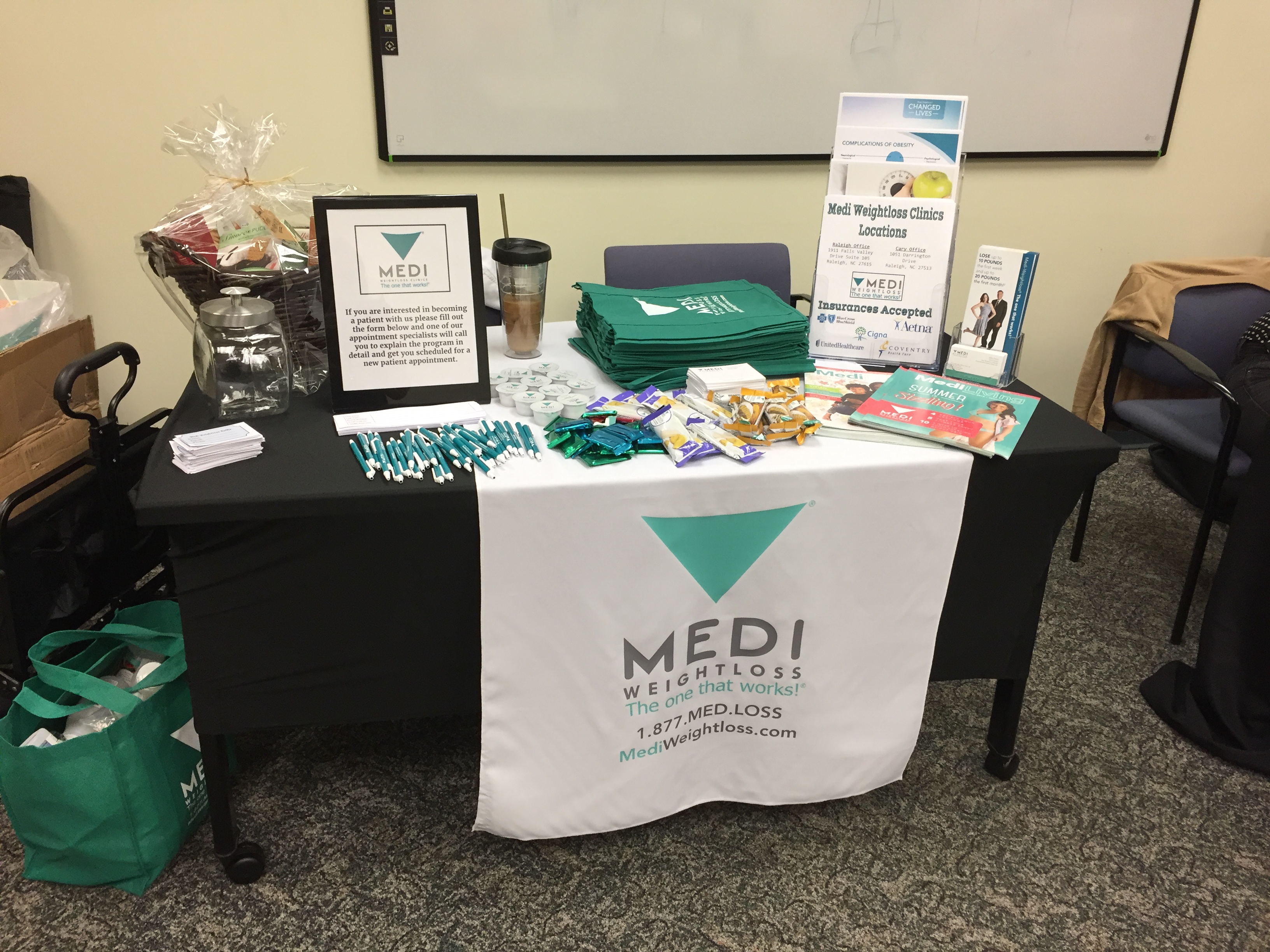 As the premier medically-supervised weight loss practice in the Triangle, we will show your employees all that we have to offer at our clinic. We create at least 3 prize baskets to raffle off for employees to take home that include some of our vitamin supplements, protein shakes, protein bars, and other signature menu items.