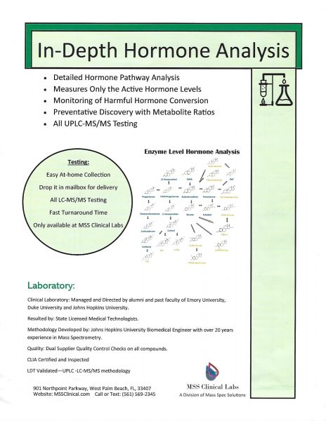 MSS Clinical Labs in a CLIA licensed clinical laboratory. We specialize in testing hormones in saliva and urine using the latest in mass spectrometry technology. No blood draws are necessary.