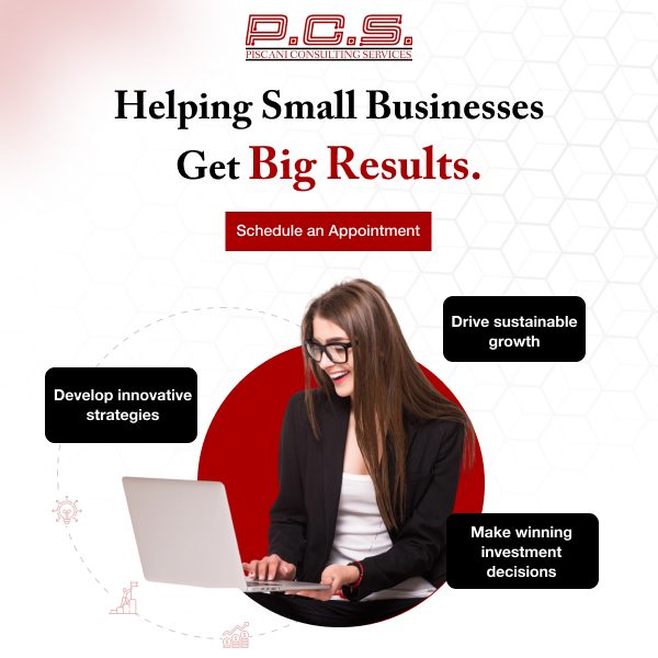 Piscani Consulting Services is a US-based strategic planning consultant that drives business growth. We offer small business coaching services and financial planning and analysis for small businesses to achieve long-term success. Our expertise spans strategic planning, FP&A (financial planning & analysis), financial modeling, valuations, and capital planning. With a focus on developing integrated business strategies that lead to significant operational improvements, we help small businesses maximize their value and establish a competitive advantage in their market. Get started today!