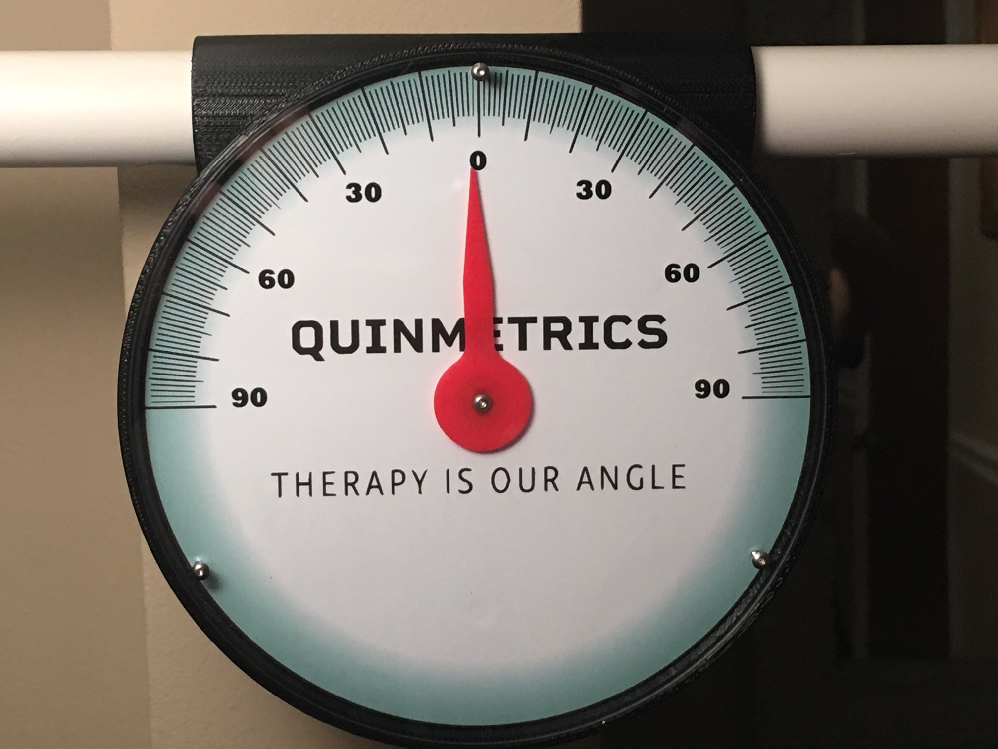 Quinmetrics is the producer of the Quinometer, which is a tool for evaluating function angular/symmetry measurements between bilateral upper extremities in shoulder flexion. Use is intuitive and straightforward. When the patient lifts the Quinometer above the head, shoulder flexion is indicated by the angular degree shown on the dial. Limitations in movement between an affected and a non-affected upper extremity can be quantified from the Quinometer angular data.