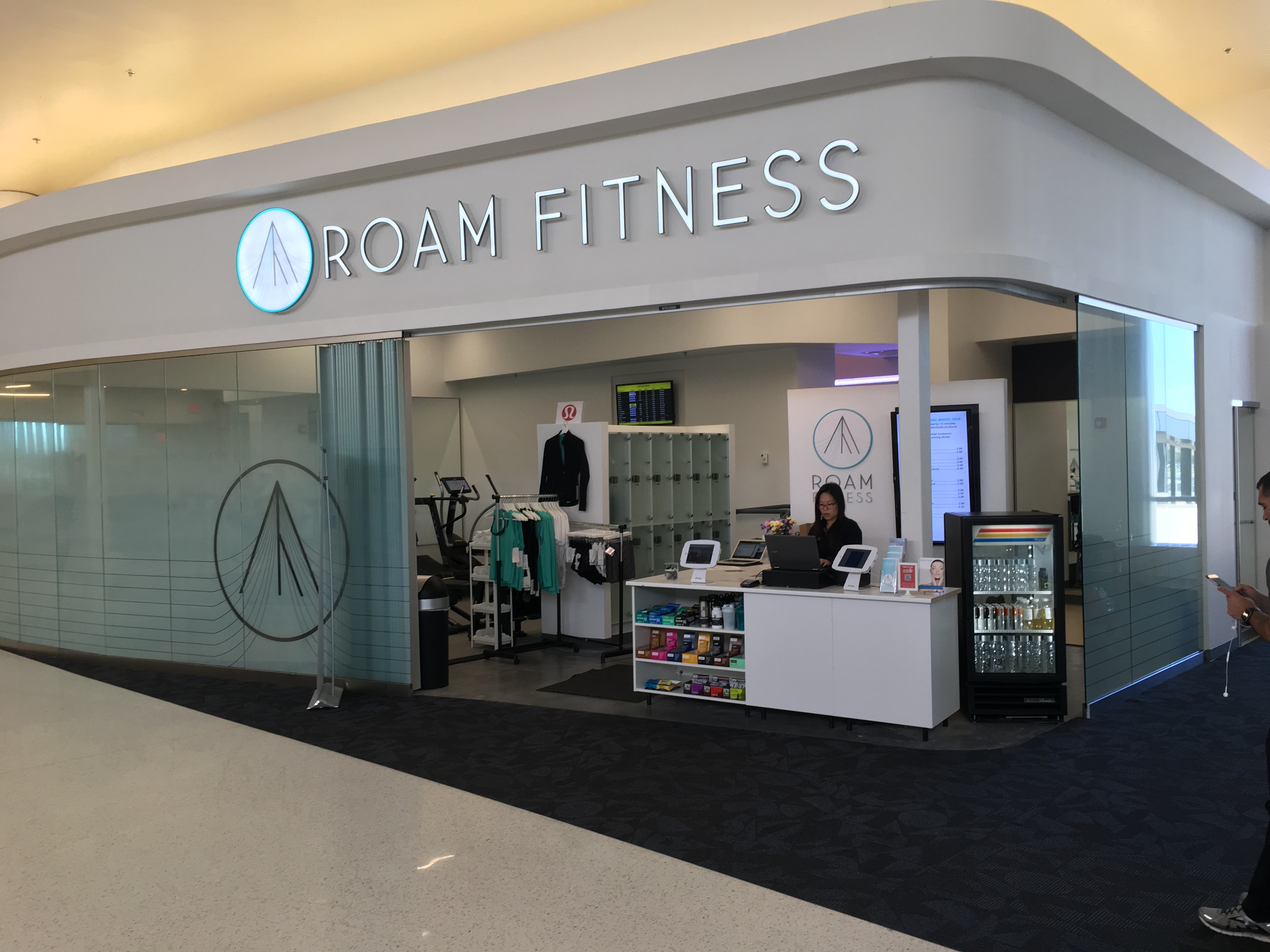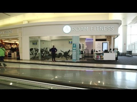 Fully equipped gym and health club located in airports, behind security.