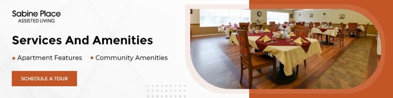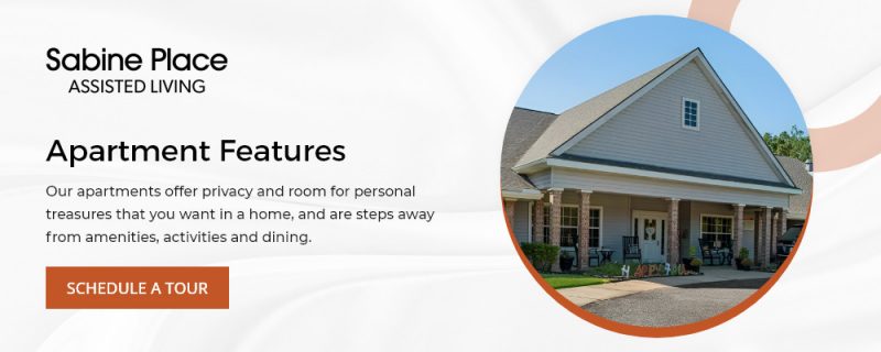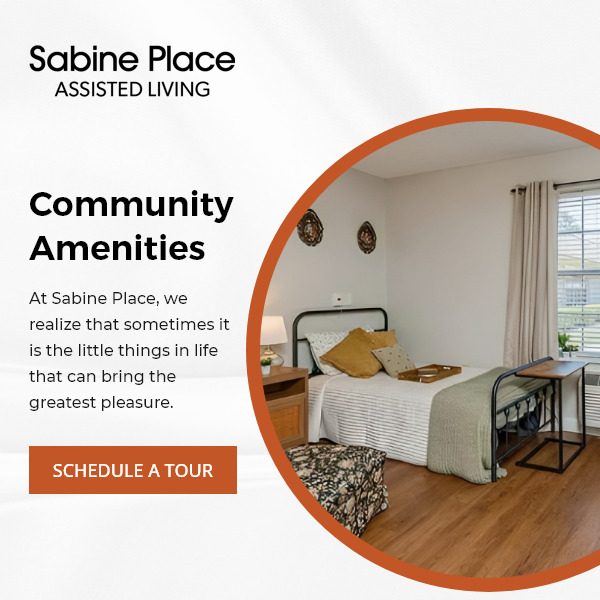 Sabine Place, situated in the heart of Orange, TX, is a stylish retirement community offering a blend of comfort, care, and enriching experiences. Tailored for those seeking an exceptional assisted living lifestyle, Sabine Place provides personalized care plans to meet the unique needs of each resident, ensuring a fulfilling and independent living experience. Our community also offers respite care, providing a temporary, compassionate environment for seniors. As a retirement community in Orange, TX, Sabine Place emphasizes creating a vibrant and engaging atmosphere, where residents can enjoy a variety of social activities, wellness programs, and a sense of belonging. Our commitment to enhancing the lives of our seniors makes us a nurturing, caring choice for those looking for quality senior living.