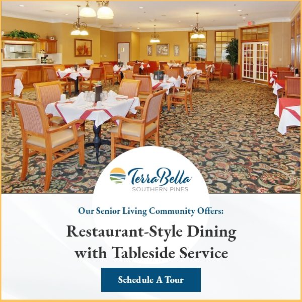 As a reputed retirement community in Southern Pines, NC, TerraBella Southern Pines is perfect for area seniors who can benefit from available 24-hour excellent care and a quality lifestyle that is fit for the golden years. Whether you are looking for assisted living services or personalized memory care services, you will not be disappointed with the community amenities and the huge menu of unique senior living features we have here at TerraBella Southern Pines. Visit us today to see for yourself!