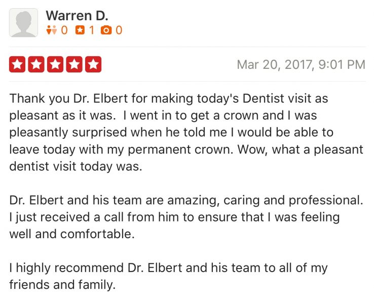 To learn more about Dr. Elbert’s practice, we invite you to browse through our website. If you want to experience our gentle, kind and caring dentistry first hand, stop by and see us. Our office is conveniently located in Thousand Oaks.
