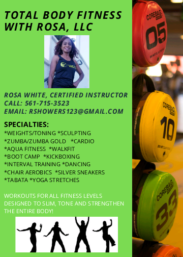 Total Body Fitness with Rosa is a Mobile fitness business, with over 14 years of assisting clients in Palm Beach County with living healthier Lifestyles