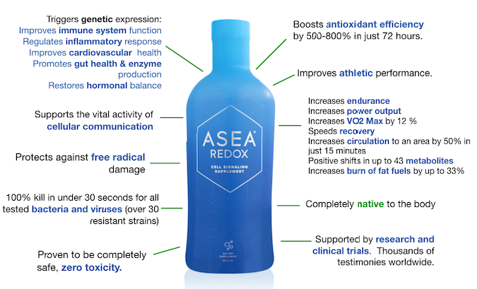 ASEA REDOX products are the first and only products on the market that contains active redox signaling molecules, cellular messengers vital in protecting, rejuvenating, and restoring cells. These molecules, native to the human body, are created through a groundbreaking, patented process that reorganizes molecules of natural salt and purified water into redox signaling molecules.