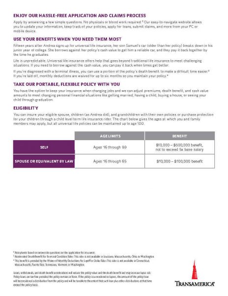 Transamerica has been helping people feel better about the future for more than 100 years. We provide investment, retirement, and life insurance solutions to more than 11 million customers throughout the U.S. But the way we see it, our responsibility goes beyond our clients’ accounts. We’re in the business of helping people live well and empowering them to create a better tomorrow through the financial and health-related habits they form today. We help people prepare by providing solutions that consider the whole picture. That’s the power of the Wealth + HealthSM connection.