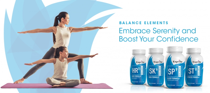 It’s increasingly clear that keeping your life in balance is the best way to get more out of it. With Esprita’s Balance Elements you can enjoy deeper sleep, better stress management, and healthier hair, skin, and nails to make you feel good and boost your confidence. Balance is essential. Esprita tips the scales in your favor.